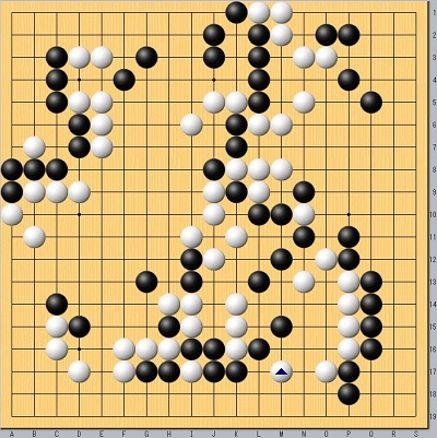 白:本因坊文裕 黒:本木克弥八段 白中押し勝ち