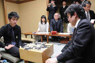 The first game of the 22nd Women's Meijin title match, in which Mukai Chiaki was making her first title challenge, was held on 3 March at the Takashima inn in Iwamuro Hot Spring, the same venue where the first Judan game was held a day later (both titles are sponsored by the Sankei Newspaper). Taking white, Xie won by resignation after 196 moves.