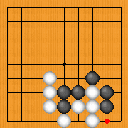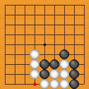 黒が赤い点に打つと白石4個がアタリとなりますが、白がアタリを回避してつなぐと大変なことになります。