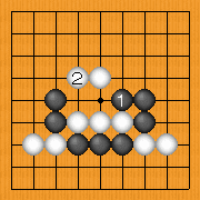 黒1と打てば白2と連結されてこれ以上黒は攻めることができません。