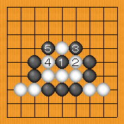 白2、4と打って黒1を取り上げることはできますが、逆に白石5個がアタリとなってツイでもまた、その先で取られてしまいます。これもオイオトシの一種です。