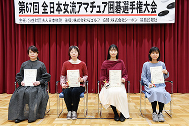 左から、4位林、2位宇根川、優勝藤原、3位西方の各選手