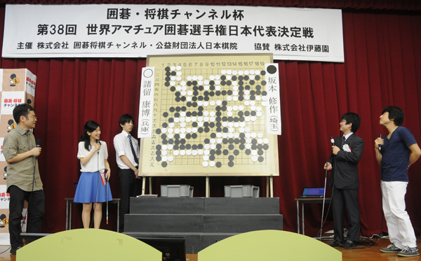 囲碁・将棋チャンネル杯第38回世界アマチュア囲碁選手権日本代表決定戦(主催:囲碁・将棋チャンネル・日本棋院)が9月17・18日に東京・市ヶ谷の日本棋院東京本院で行われ、坂本修作さんが初優勝し、来年の世界アマチュア囲碁選手権日本代表に決定した。決勝戦は山下敬吾九段、青葉かおり五段による大盤解説会が行われた。