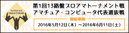 日本棋院ドリームファンディングの第1回特別企画として開かれる「第1回13路盤プロアマトーナメント戦」の本戦入りをかけたアマチュア・コンピュータの代表(2枠)選抜戦で、「幽玄の間」初の13路盤大会です。