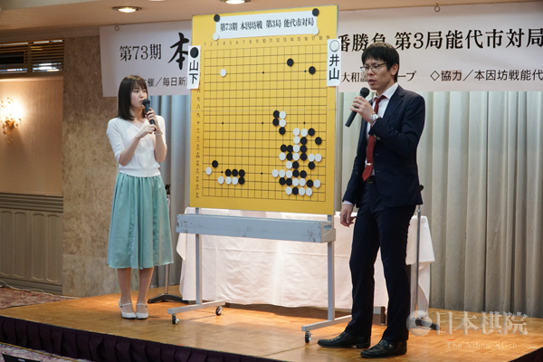 本因坊文裕(井山裕太九段)に山下敬吾九段が挑戦する第73期本因坊戦挑戦手合七番勝負【主催: 毎日新聞社】の第3局が6月2、3日(土、日)に秋田県能代市の「旧料亭金勇」で行われた。