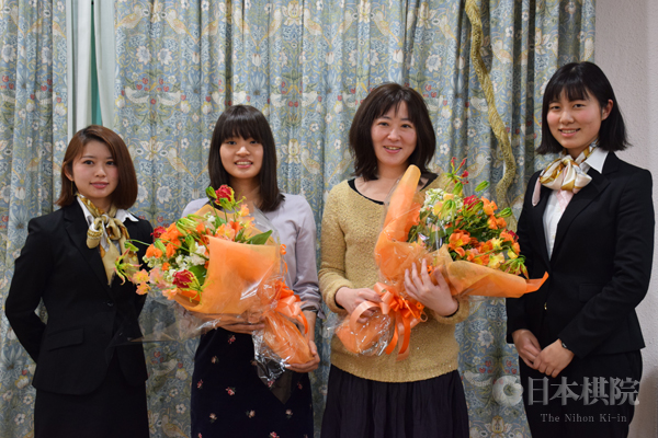 矢代六段「タイトル戦が11年ぶりという事ですごく緊張しているのですけれども、女流名人戦で挑戦手合を打つのは初めてで、タイトル戦を打つという事を感覚的に忘れているという事もあって、こんなに良くしてもらえるものなのかなと既に感動しています。