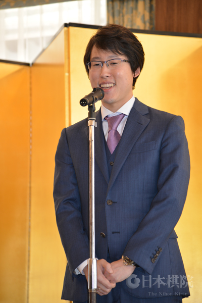まず、主催者を代表して北海道新聞社の五十嵐正剛東京支社長から「2度目の七冠という前人未到の記録は、技術のみならず、精神面、体力面が充実していたからだ」とたたえ、その上で「LG杯2局目は鳥肌が立つほどの素晴らしい対局だった」という解説に関わった棋士の感想を引用して、井山裕太天元の素晴らしさを称賛した。