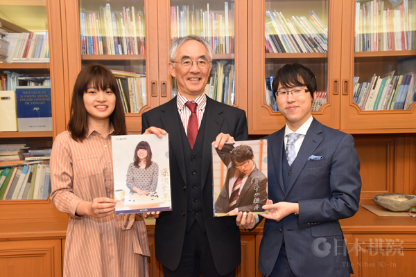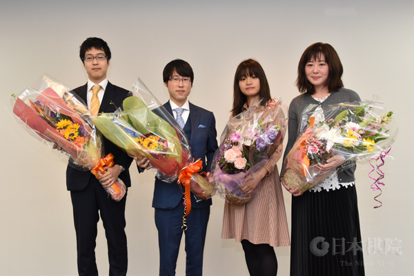 村川八段「この大阪商業大学には10回近く来させて頂いています。高校選抜全国大会の指導碁ですとか、十段戦と女流名人戦の見学に来させて頂いています。明日から十段戦が始まりますが、私4回目のタイトル戦登場なんですけれども、全て対戦相手が同じ方ということで(会場笑)たまには違う方と打ちたいです。井山さんは長きに渡って圧倒的な成績を残されている方ですので、避けては通る事ができない非常に大きな壁と感じています。明日から厳しい戦いがありますけれども、華がある碁を打てるように頑張っていきたいと思います」