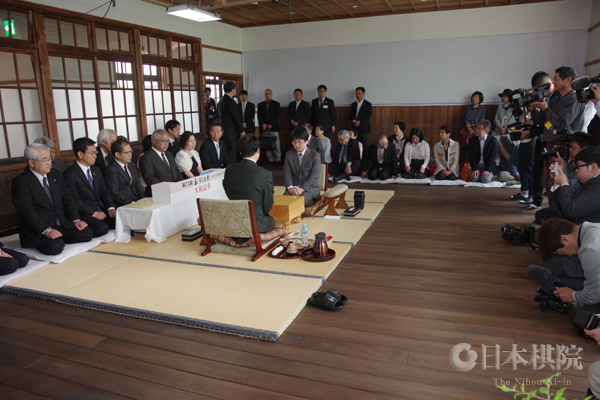 握りの結果、山下の先番と決まり、9時より対局が始まった。持ち時間は各8時間。1日目は、本日夕刻に封じ手による打ち掛けとなり、16日に2日目が打ち継がれる。