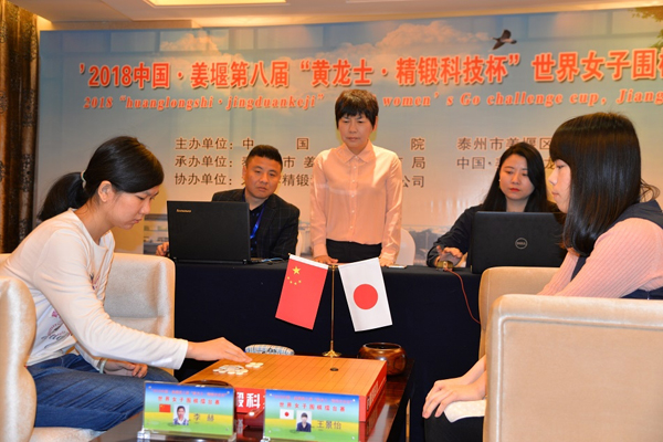 日本、中国、韓国各チーム女流棋士5人による勝ち抜き戦、第8回中国姜堰黄竜士精鍛科技杯世界女子囲碁団体戦の4日目が4月12日に中国江蘇省泰州市姜堰区で行われた。