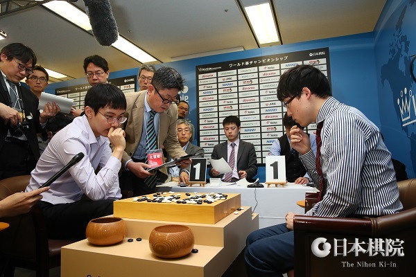先に勝敗がついたのは、芈昱廷九段(中国)-DeepZenGo(囲碁AI)戦。283手まで芈がDeepZenGoに黒番中押し勝ちをおさめた。終局時間は16時30分。持時間3時間のうち残り時間は黒番の芈が5分、白番のDeepZenGoが27分だった。