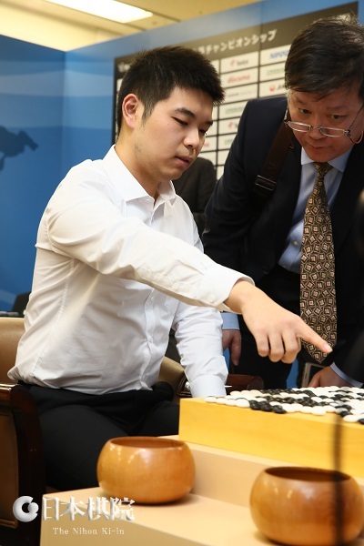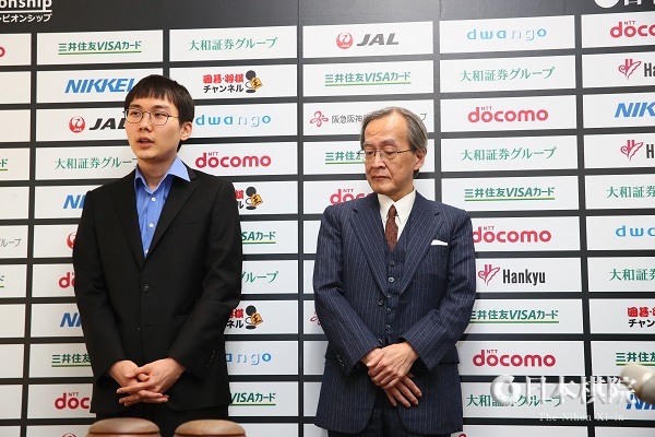 別室での朴とDeepZenGoの開発チーム代表の加藤英樹氏のぶら下がり取材が終わり、それを待つかのように、井山裕太九段(日本)-芈昱廷九段(中国)戦が終局。286手まで芈が井山に白番2目半勝ちをおさめた。終局時間は18時8分。持時間3時間のうち残り時間は両者ともに1分だった。