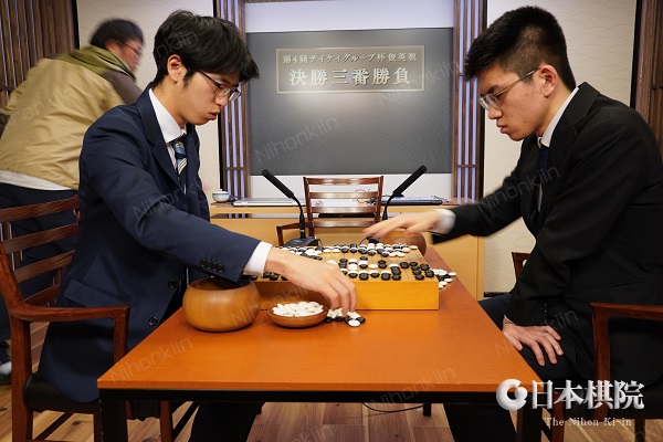 5日の第1局では299手までで黒番の三浦が中押し勝ちを収め、テイケイ杯俊英獲得にあと1勝に迫った。