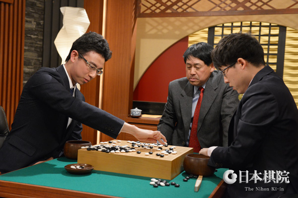 解説の小林光一名誉三冠(中央)も加わり、検討が続けられた