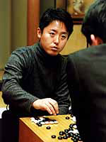 Only one game was played last week in the 25th Meijin league, but it was an exciting affair, with Takemiya Masaki making a centre enclosure (moves to the left and right of the centre point) with his 11th and 15th moves. His opponent, Ryu Shikun, responded in like spirit, leading to a very interesting game. Ryu lost a large group, but got an outside squeeze. Even so, Takemiya was ahead, but perhaps he was overoptimistic, for he let Ryu overhaul him in the endgame. Ryu (W) won by 5.5 points. This was Ryu's second win for no loss, so he shares the lead in the league with Yoda Norimoto. The only other undefeated player is Hane Naoki, who has played just one game. Takemiya has made a bad start, with two losses.