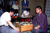 When we say "young" players, that applies to the Korean side more than to the Japanese. This has been an explosion of interest in go among young people in Korea, resulting in the emergence of a very strong group of young professionals at the Korean Ki-in (Hanguk Kiwon). According to Oya, every year the Korean team seems to be getting younger and younger. This year almost all of their players were teenagers, whereas there was not one on the Japanese team.