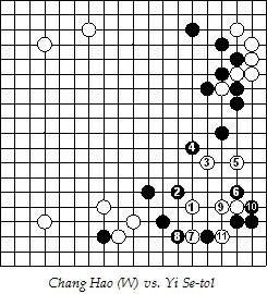 Chang Hao 9-dan (China) (W) defeated Yi Se-tol 9-dan (Korea) by resig.