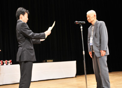 In a speech at the closing ceremony, Chizu Kobayashi 5p, the chair of the tournament committee, mentioned about Mr. Hirata who is the Japanese reprehensive in WAGC. She said `you should note how it is amazing as he is 84 years old'. `Imagine if you were 84 years old and you got through the qualifying rounds and became the representative and got fifth place in WAGC tournament', she said. `Can you make the same thing as Hirata did when you become 84 years old? ` she added.