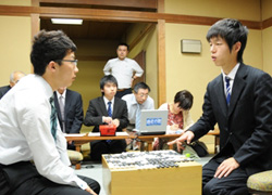 Kanazawa Makoto 3p (aged 20) and Fujita Akihiko 3p (aged 20) played for The best-of-three final of The 37th King of the New Stars title in 2012. The third game was played on 9 October 2012 at The Nihon Kiin in Tokyo. Kanazawa (white) defeated Fujita by 11.5 points and gets King of the New Stars title by 2-1.