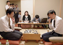 In the playoff match to decide the challenger of the 38th Meijin title to Yamashita Keigo, held at the Nihon Ki-in in Osaka on 5 August 2013, Iyama (B) beat Kono Rin 9p by resignation.