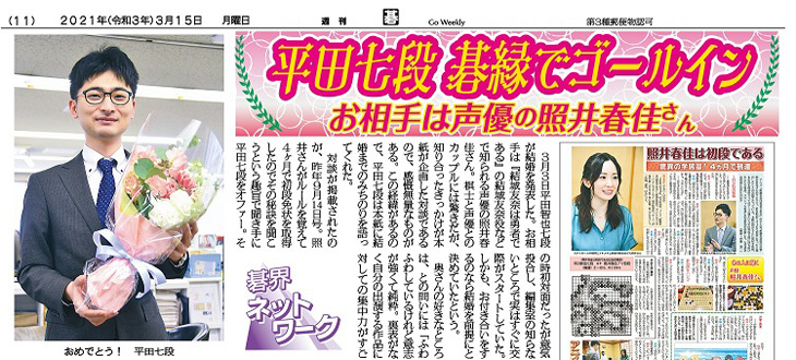 - ※ 平田七段の結婚記事は2021年3月15日号、二人の出会いは2020年9月14日号いずれもkindleから購入可能です。