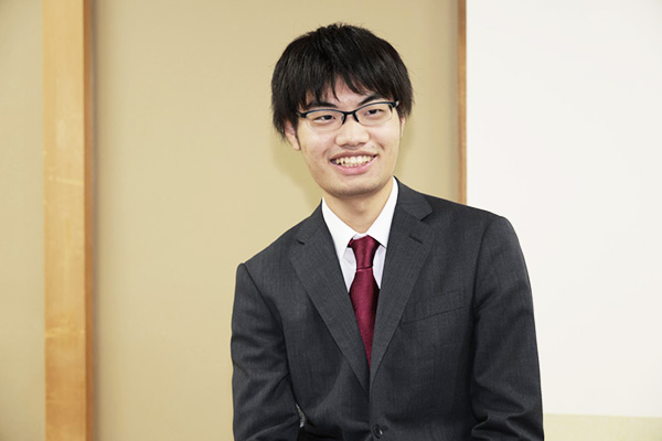「裏表のない人です。高尾(紳路九段)先生の研究室でよく会います。いつもいて、高尾先生と対局してますね。勝つと嬉しそうだし負けると悔しそうだから、勝ったか負けたかすぐに分かります(笑)。あと、彼はオシャレです。」
