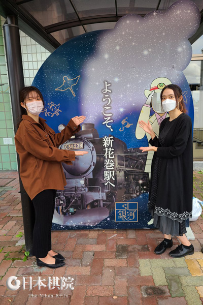 藤沢里菜女流本因坊と新花巻駅にて