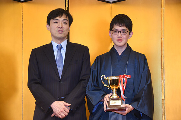 第43期新人王戦囲碁将棋合同表彰式にて。新人王を獲得した広瀬二段(当時)と藤澤八段。