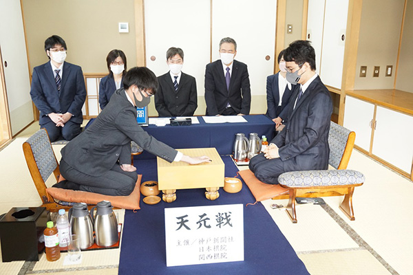 第47期天元戦第4局。教室初の七大タイトルホルダー、関航太郎天元が誕生した。
