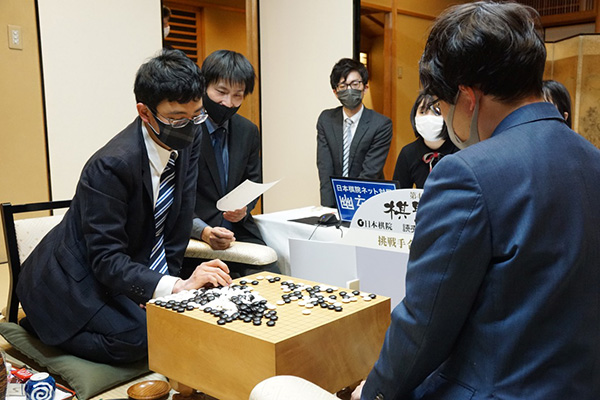 第1局、1月13、14日、東京都文京区「ホテル椿山荘東京」。一力「初戦で難しい碁に勝つことができ、気が楽になった」。