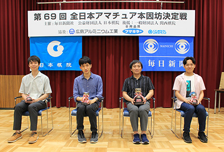 左から4位杉田、準優勝栗田、アマ本因坊大関、3位川口