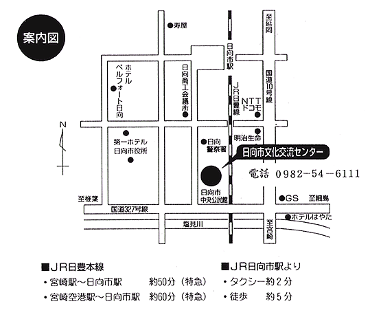 | Hyuga Cultural Hall 1-31 Nakamachi, Hyuga City, Miyazaki Pref. TEL.0982-54-6111 FAX.0982-54-2575 |