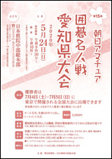 Tweet 2020年04月01日 中部総本部 囲碁大会 第15回朝日アマチュア囲碁名人戦愛知県大会は、新型コロナウイルス感染拡大の影響を受け、参加者の皆様の健康と安全を考慮し、中止させていただくこととなりました。 楽しみにして頂いた皆様には大変申し訳ございまんが、ご理解、ご了承のほどよろしくお願い申し上げます。 主催 朝日新聞社、日本棋院中部総本部 日時 2020年5月24日(日)9:30~受付 10:00~開始 ※ 人数により順位戦を5月30日(土)におこなう。 会場 日本棋院中部総本部 参加費 3,000円 資格 愛知県在住者もしくは職場、学校が愛知県の方であれば参加可能。 ※ 尚、複数の県にまたがっての参加は不可。 内容 オール互先・先番6目半コミ出し・トーナメント方式 表彰 優勝から4位までの入賞者に楯を贈呈。 申込 日本棋院中部総本部事業部まで 締切 5月14日(木) 必着 詳細はこちら Tweet 囲碁大会・イベントカテゴリのトップページはこちら 一覧に戻る 前の記事【岐阜】第23回東濃囲碁まつり 次の記事【全国】第17回小中学校囲碁団体戦 中止