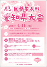 Tweet 2021年03月16日 中部総本部 囲碁大会 主催 朝日新聞社、日本棋院中部総本部 日時 4月11日(日) 受付12時~、開会12時30分~ 会場 中部総本部 参加費 3,000円 資格 愛知県在住者もしくは職場、学校が愛知県の方であれば参加可能 ※ 尚、複数の件にまたがっての参加は不可 内容 オール互先・先番6目半コミ出し・トーナメント方式 表彰 入賞者に楯を贈呈。 申込 日本棋院中部総本部事業部まで 締切 4月1日(木) 必着 詳細はこちら 詳細はこちら Tweet 囲碁大会・イベントカテゴリのトップページはこちら 一覧に戻る 前の記事【東京本院】SENKO CUPワールド碁女流最強戦2021 決勝大盤解説会 次の記事【オンライン】有村比呂司九段『上級・有段者のための「実戦で役立つ序盤の手筋」講座』2021年4月度 募集!