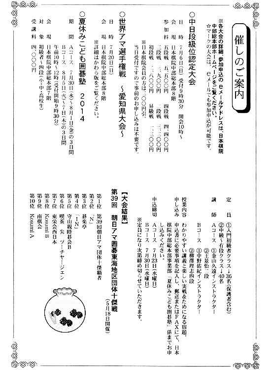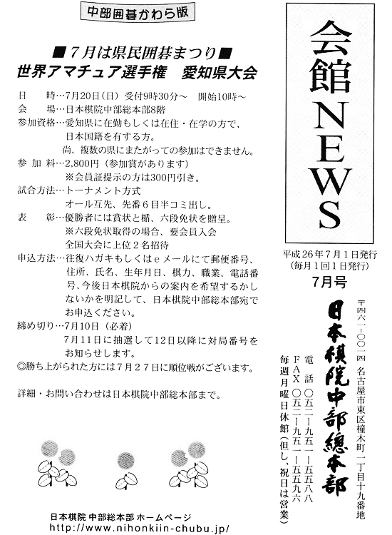 Tweet 2014年06月27日 お知らせ 中部総本部 Tweet 囲碁大会・イベントカテゴリのトップページはこちら 一覧に戻る 前の記事【東京本院】第4回フマキラー囲碁マスターズカップ 決勝大盤解説会 次の記事【中部】第69期本因坊戦解説会のお知らせ!