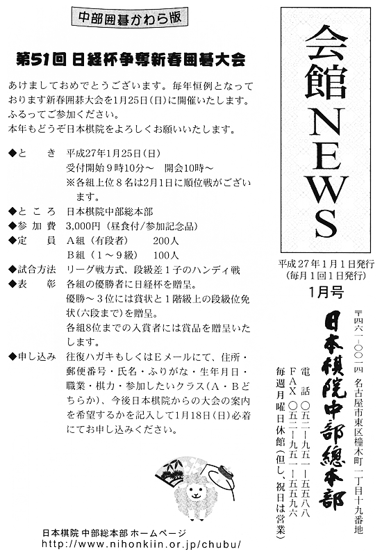 Tweet 2014年12月22日 お知らせ 中部総本部 Tweet 囲碁大会・イベントカテゴリのトップページはこちら 一覧に戻る 前の記事【中部】第30回大人のための級位者囲碁大会 冬季 次の記事【東京本院】第4回 渡辺和代キッズカップ囲碁大会