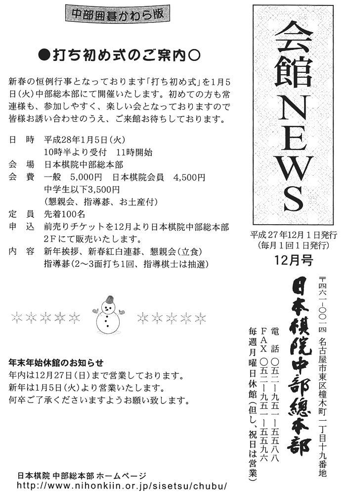 Tweet 2015年11月26日 お知らせ 中部総本部 Tweet 囲碁大会・イベントカテゴリのトップページはこちら 一覧に戻る 前の記事【徳島】とくしま囲碁将棋フェスタ2015 次の記事【千葉】津田沼囲碁クラブ催し物案内(12月)