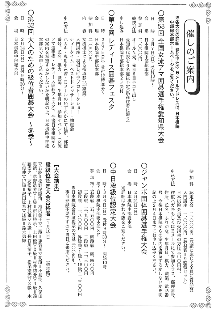 Tweet 2016年02月01日 お知らせ 中部総本部 Tweet 囲碁大会・イベントカテゴリのトップページはこちら 一覧に戻る 前の記事【市ヶ谷】女流アマ選手権特集ページ公開! 次の記事【千葉】津田沼囲碁クラブ催し物案内(2月)