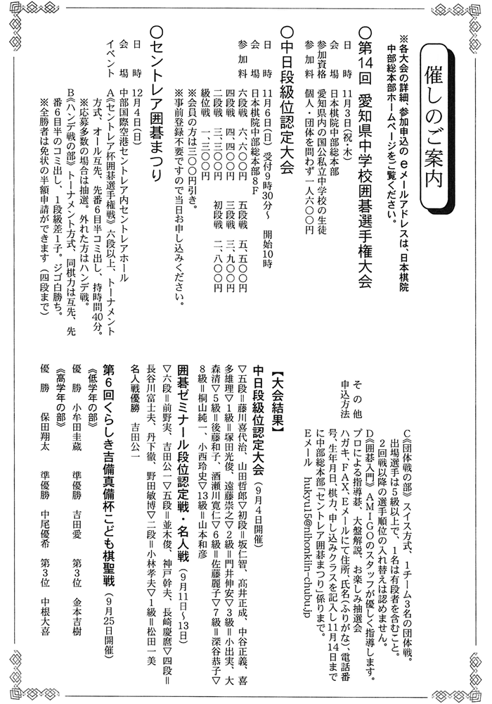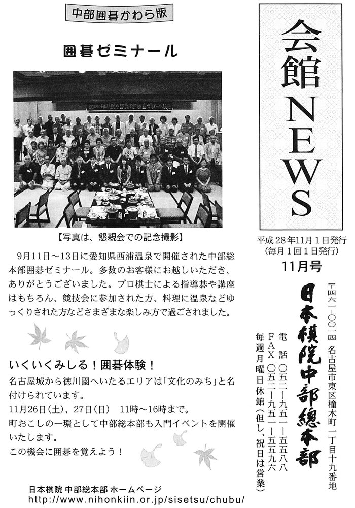 Tweet 2016年11月09日 お知らせ 中部総本部 Tweet 囲碁大会・イベントカテゴリのトップページはこちら 一覧に戻る 前の記事1泊2日「第5回松竹梅囲碁の集いin箱根」 次の記事【有楽町】段位認定大会