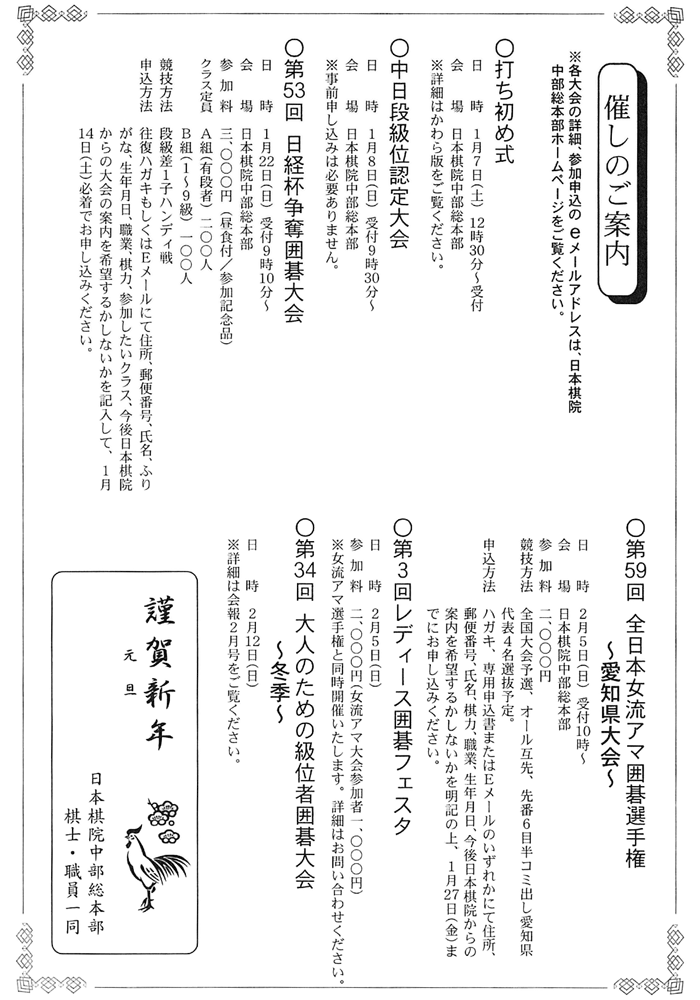 Tweet 2016年12月26日 お知らせ 中部総本部 Tweet 囲碁大会・イベントカテゴリのトップページはこちら 一覧に戻る 前の記事【東京本院】2017年第46回ジャンボ囲碁大会 月組 次の記事【東京本院】第10回千代田区こども囲碁大会