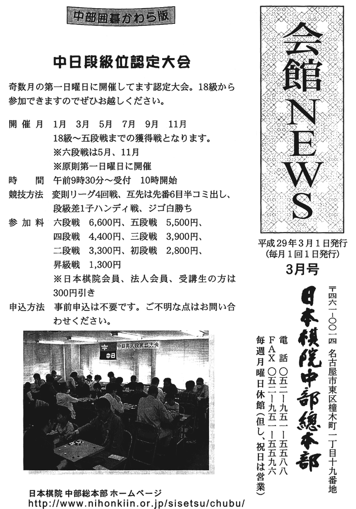 Tweet 2017年02月28日 お知らせ お知らせ 中部総本部 Tweet 囲碁大会・イベントカテゴリのトップページはこちら 一覧に戻る 前の記事【京都】第29期女流名人戦挑戦手合三番勝負第1局 大盤解説会 次の記事【有楽町】級位者棋力認定大会(1級~15級戦)