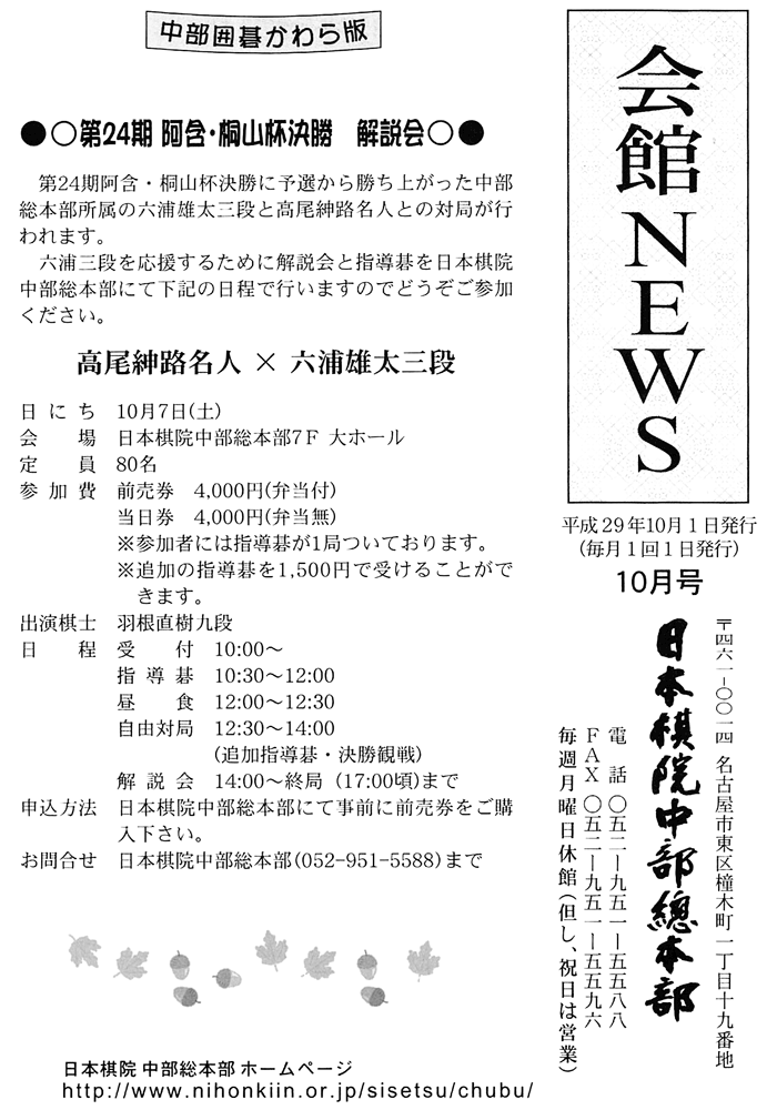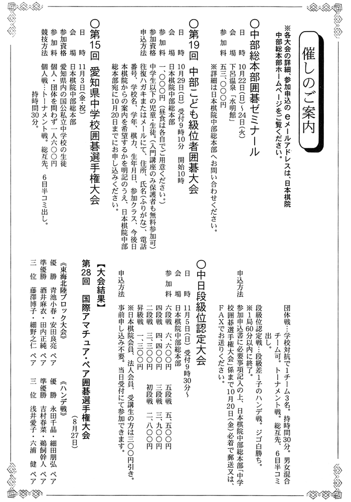 Tweet 2017年10月10日 お知らせ 中部総本部 Tweet 囲碁大会・イベントカテゴリのトップページはこちら 一覧に戻る 前の記事【神奈川】第6回松竹梅囲碁の集いin箱根 次の記事【大阪】第10回宝酒造杯囲碁クラス別チャンピオン戦 大阪大会