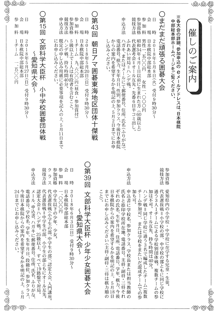 Tweet 2018年04月24日 お知らせ 中部総本部 Tweet 囲碁大会・イベントカテゴリのトップページはこちら 一覧に戻る 前の記事【有楽町】AIで注目を集める囲碁をゼロから学べる!ビジネスに役立つ囲碁入門講座(6月開講予定) 次の記事【愛知】第15回文部科学大臣杯 小/中学校囲碁団体戦 愛知県大会