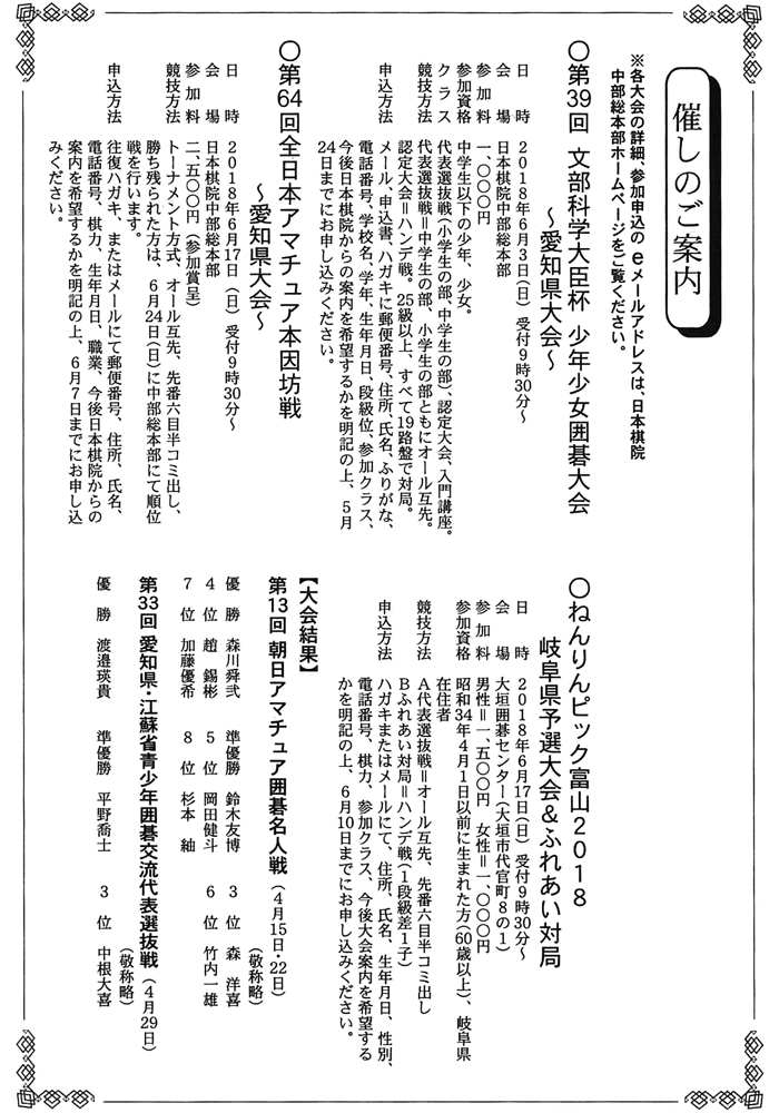 Tweet 2018年05月30日 お知らせ 中部総本部 Tweet 囲碁大会・イベントカテゴリのトップページはこちら 一覧に戻る 前の記事【福岡】第11回宝酒造杯囲碁クラス別チャンピオン戦 福岡大会 次の記事【岐阜】第21回 東濃囲碁まつり