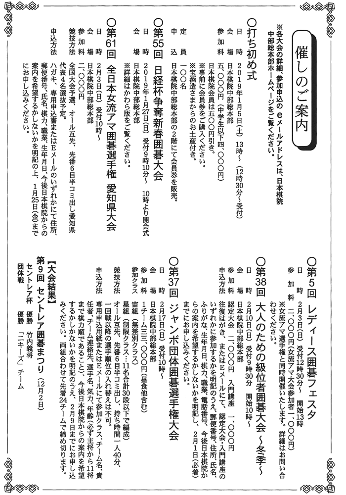 Tweet 2018年12月27日 お知らせ 中部総本部 Tweet 囲碁大会・イベントカテゴリのトップページはこちら 一覧に戻る 前の記事【東京本院】30級~11級まで限定! 大人の級位者大会 次の記事【東京本院】初春段級位認定大会2019年2月11日