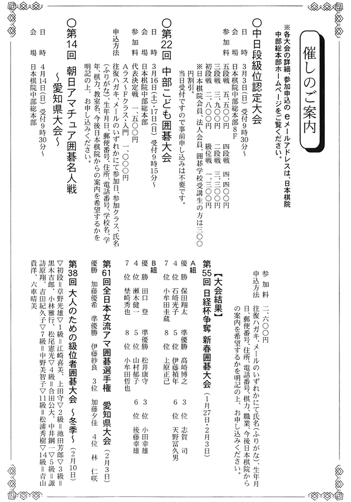 Tweet 2019年02月22日 お知らせ 中部総本部 Tweet 囲碁大会・イベントカテゴリのトップページはこちら 一覧に戻る 前の記事【東京本院】第31期女流名人戦第1局解説会のご案内 次の記事【千葉】日本棋院津田沼支部(津田沼囲碁クラブ)催し物案内(3月)