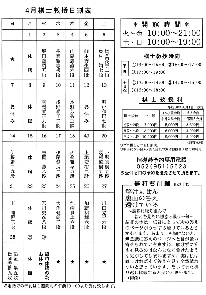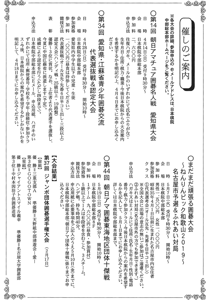 Tweet 2019年04月09日 お知らせ 中部総本部 Tweet 囲碁大会・イベントカテゴリのトップページはこちら 一覧に戻る 前の記事【北海道】めざせ!「囲碁の街 釧路」 次の記事【東京本院】日本棋院東京本院 2階売店お休みのお知らせ