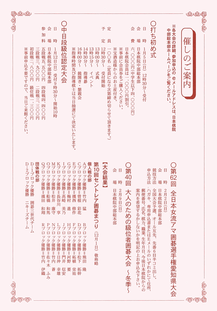 Tweet 2020年01月14日 お知らせ 中部総本部 Tweet 囲碁大会・イベントカテゴリのトップページはこちら 一覧に戻る 前の記事【有楽町】大会貸切による営業お休みのお知らせ(1/13) 次の記事【中部】第40回大人のための級位者囲碁大会~冬季~