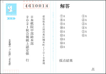 - 〒461-0014 名古屋市東区橦木町1-19日本棋院中部総本部