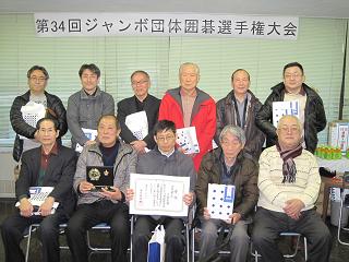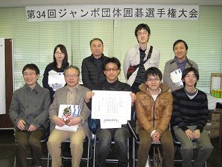 Tweet 2016年02月22日 中部総本部 大会結果 第34回ジャンボ団体囲碁選手権大会が2月21日に行われた。宙組(無差別クラス)、星組(制限クラス)に分かれ1チーム11人で行う団体戦。スイス方式、宙組(4回戦)星組(3回戦)にて結果が決まった。宙組優勝 ゲスの極みみつほ チーム宙組準優勝 森永・京都囲碁道場 チーム宙組第三位 三重支部 チーム星組優勝 気分転換 チーム星組準優勝 KOSUMI(星) チーム星組第三位 ぽよりんこ チーム Tweet 囲碁大会・イベントカテゴリのトップページはこちら 一覧に戻る 前の記事【市ヶ谷】2015年棋戦優勝者選手権戦 準決勝・決勝大盤解説会 次の記事【目黒】春の囲碁教室